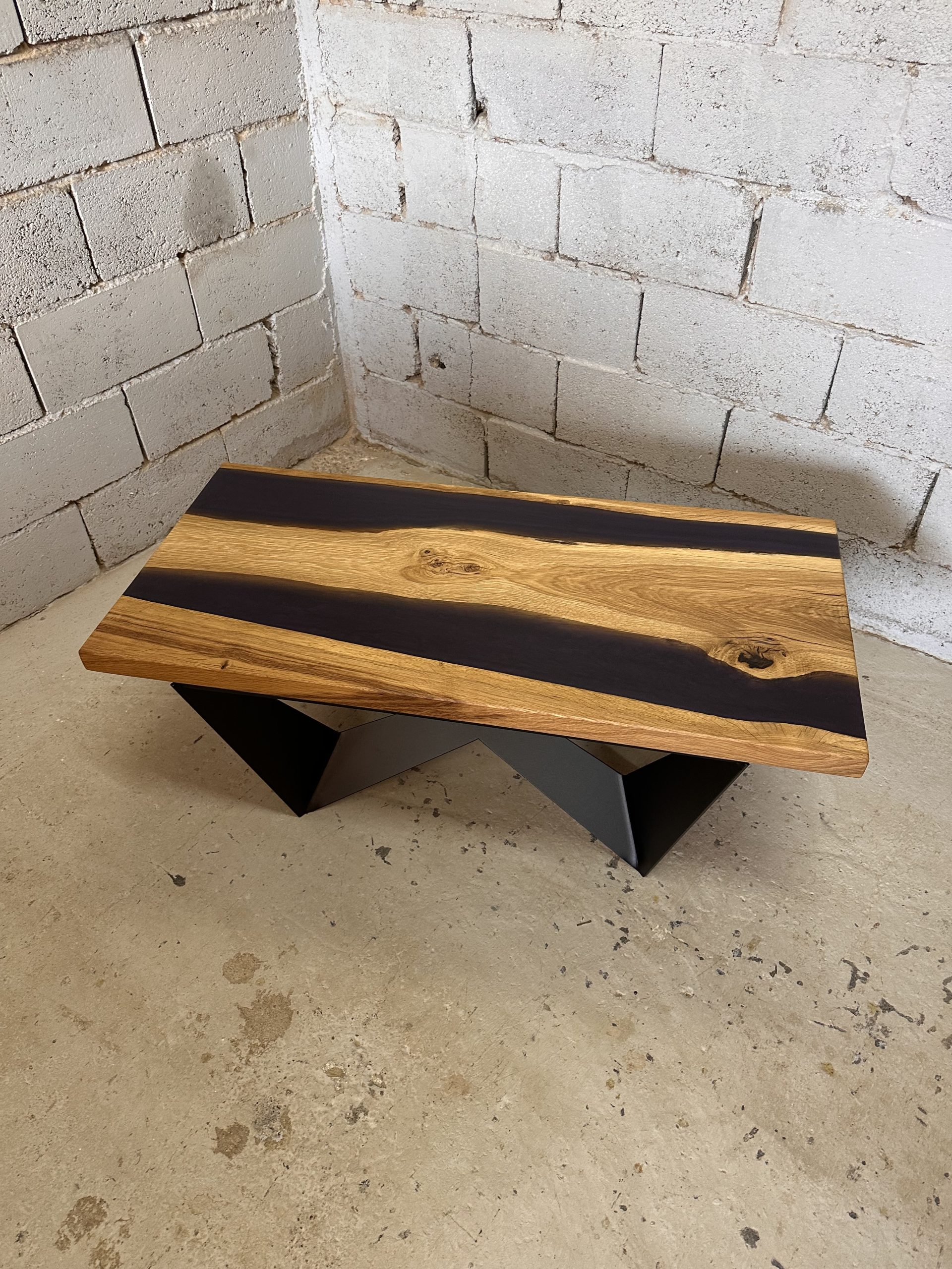 Klub sto napravljen od orahovog drveta u kombinaciji sa transparentnom epoksidnom smolom. Jedinstvena kombinacija smole i boje drveta ovom stolu daje atraktivnost koja privlači pažnju u svakom prostoru.
