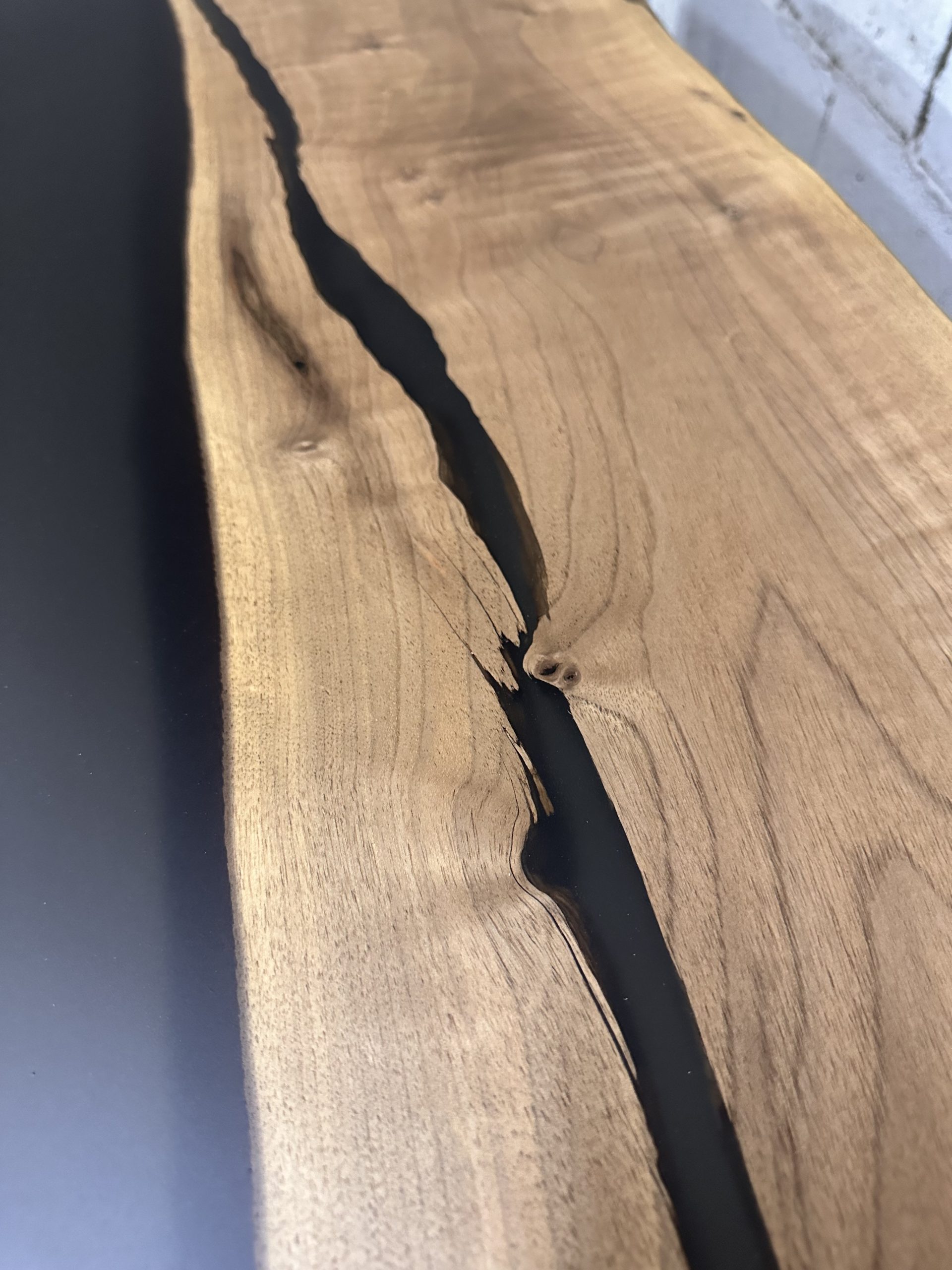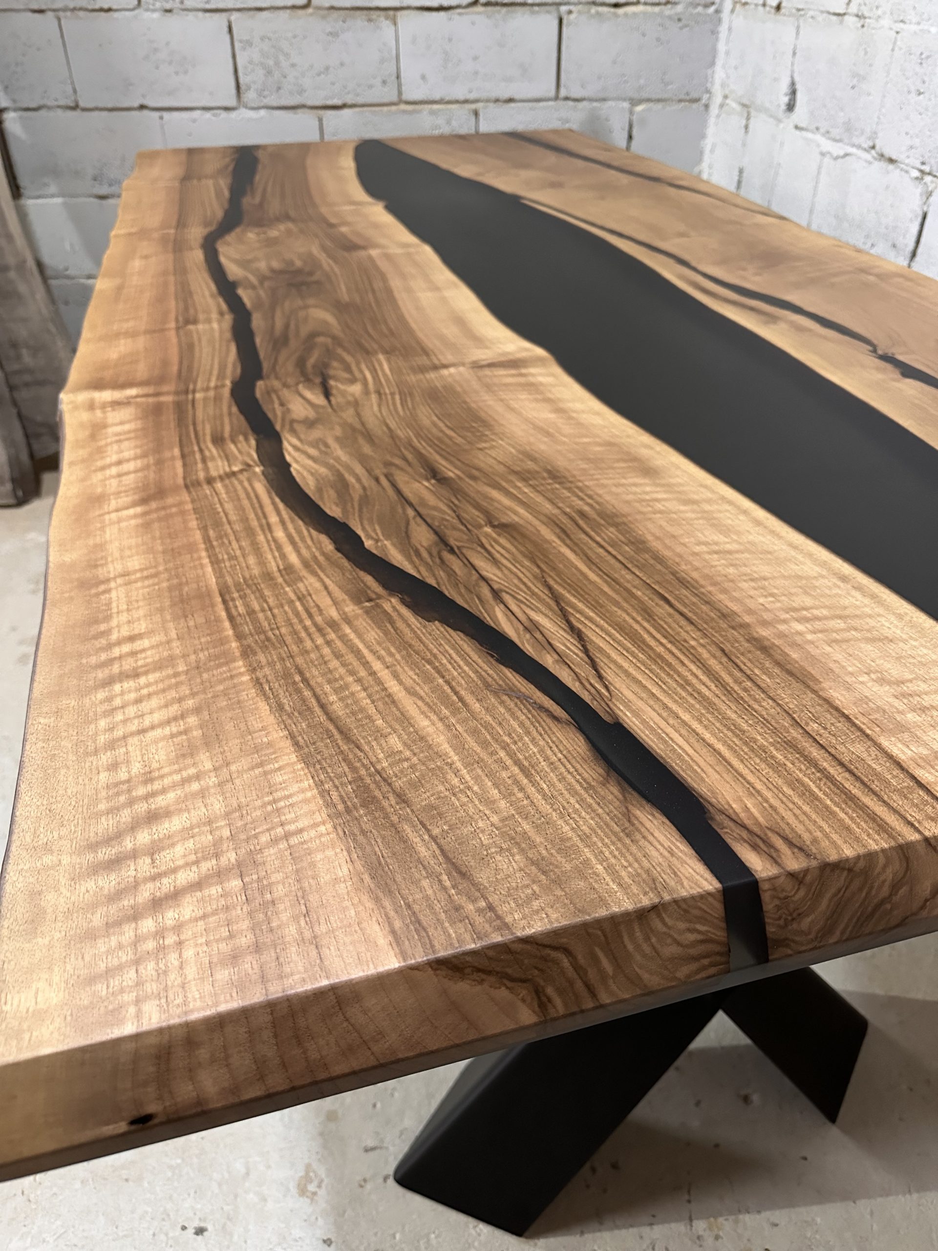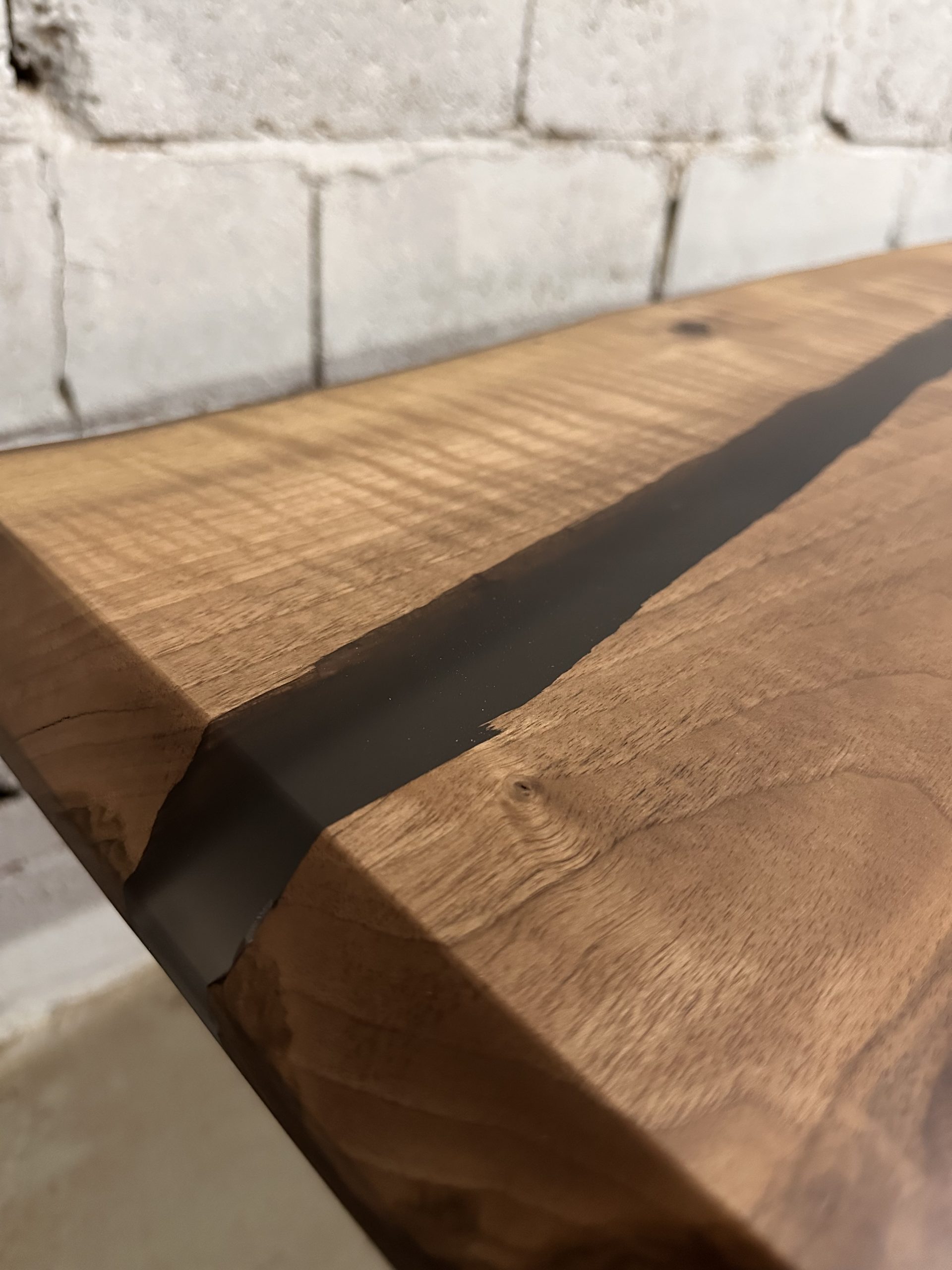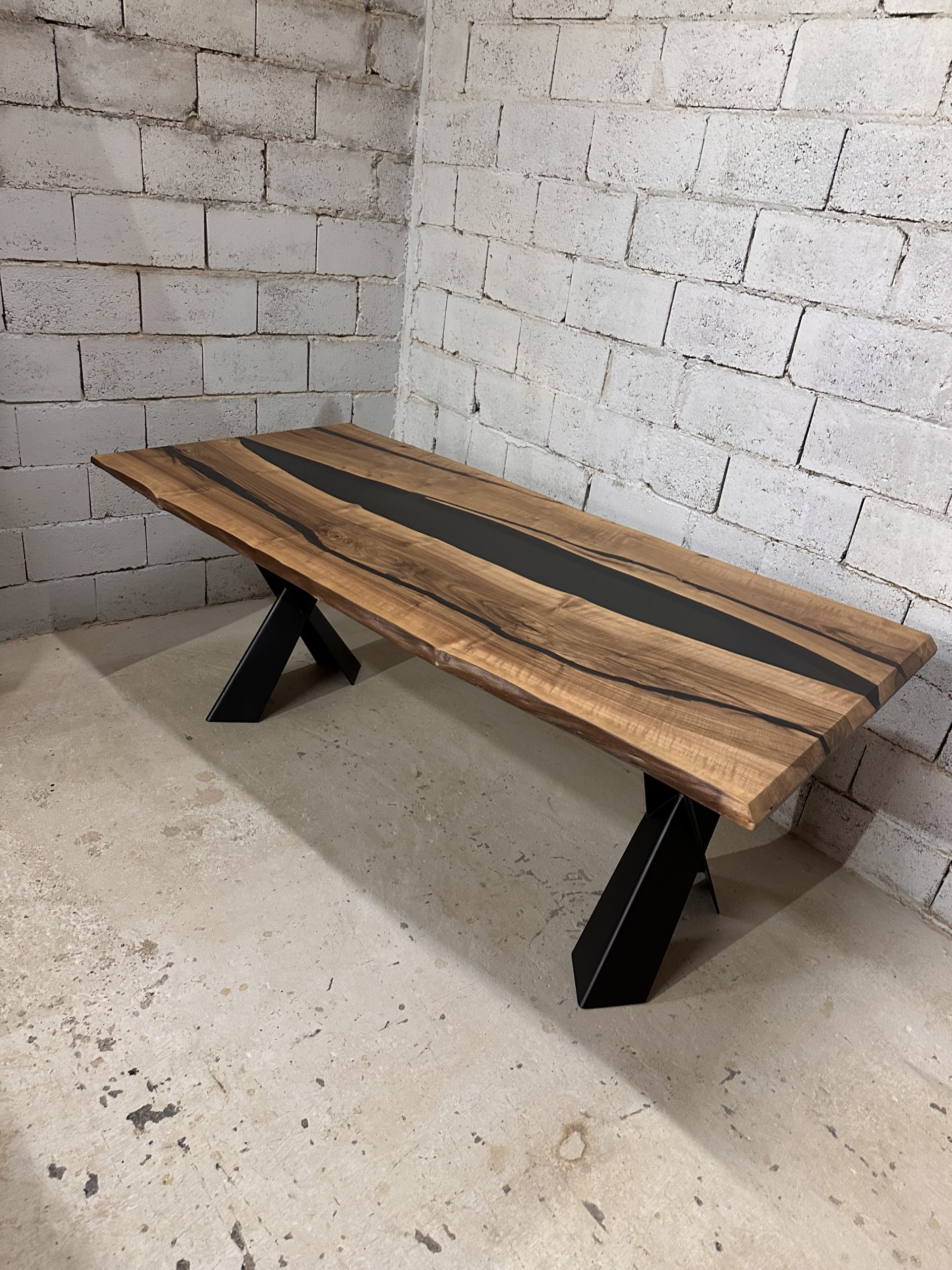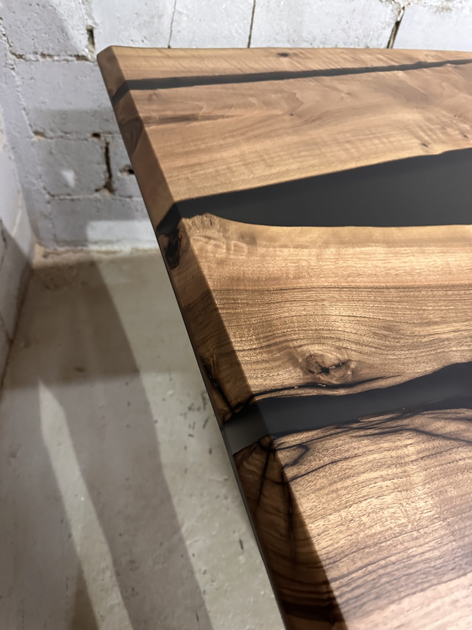 Ovaj ručno izrađeni trpezarijski sto kombinuje prirodnu lepotu orahovih dasaka e sa modernim elementima smoke black epoksi smole. Sa svojim robustnim i elegantnim dizajnom, ovaj sto je savršen dodatak svakom prostoru, pružajući jedinstven i sofisticiran izgled.