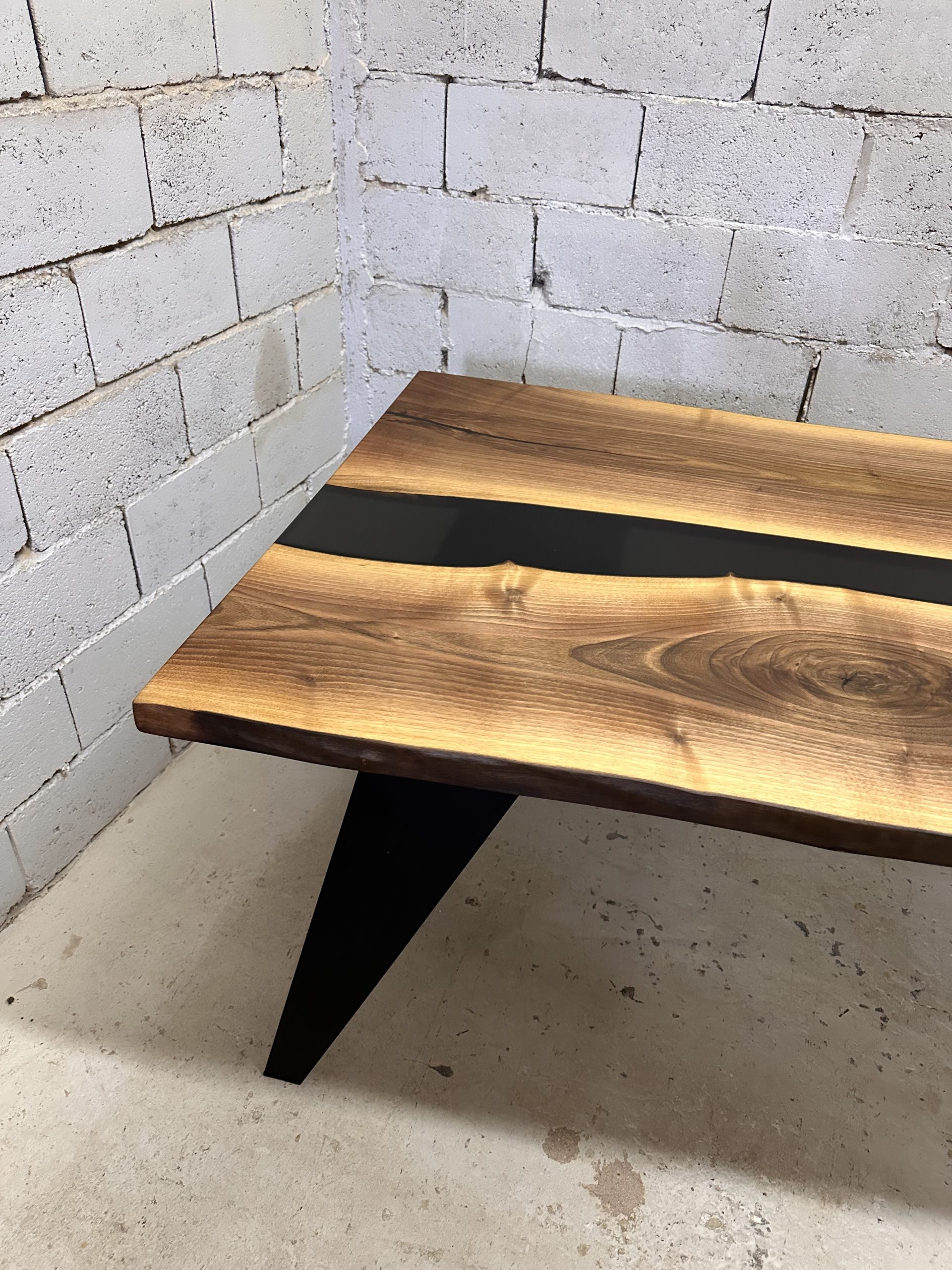 Ovaj ručno izrađeni trpezarijski sto kombinuje prirodnu lepotu orahovih dasaka e sa modernim elementima smoke black epoksi smole. Sa svojim robustnim i elegantnim dizajnom, ovaj sto je savršen dodatak svakom prostoru, pružajući jedinstven i sofisticiran izgled.