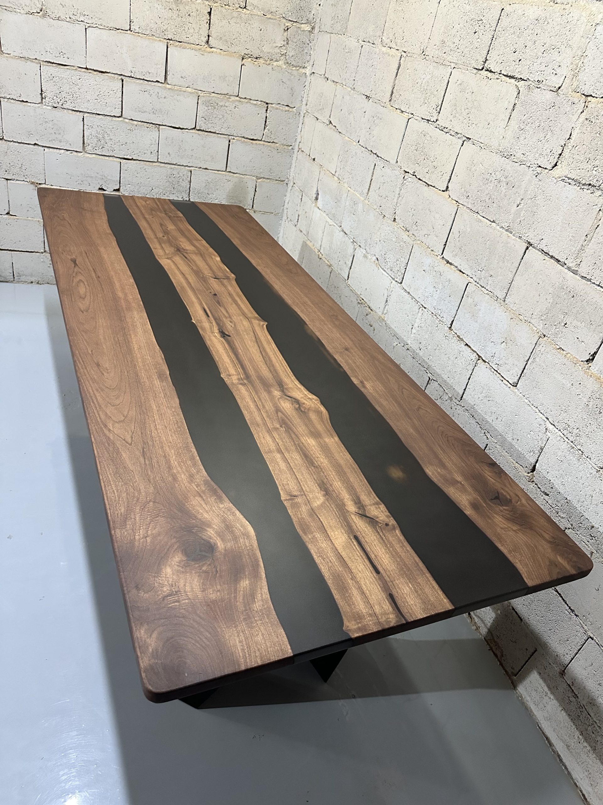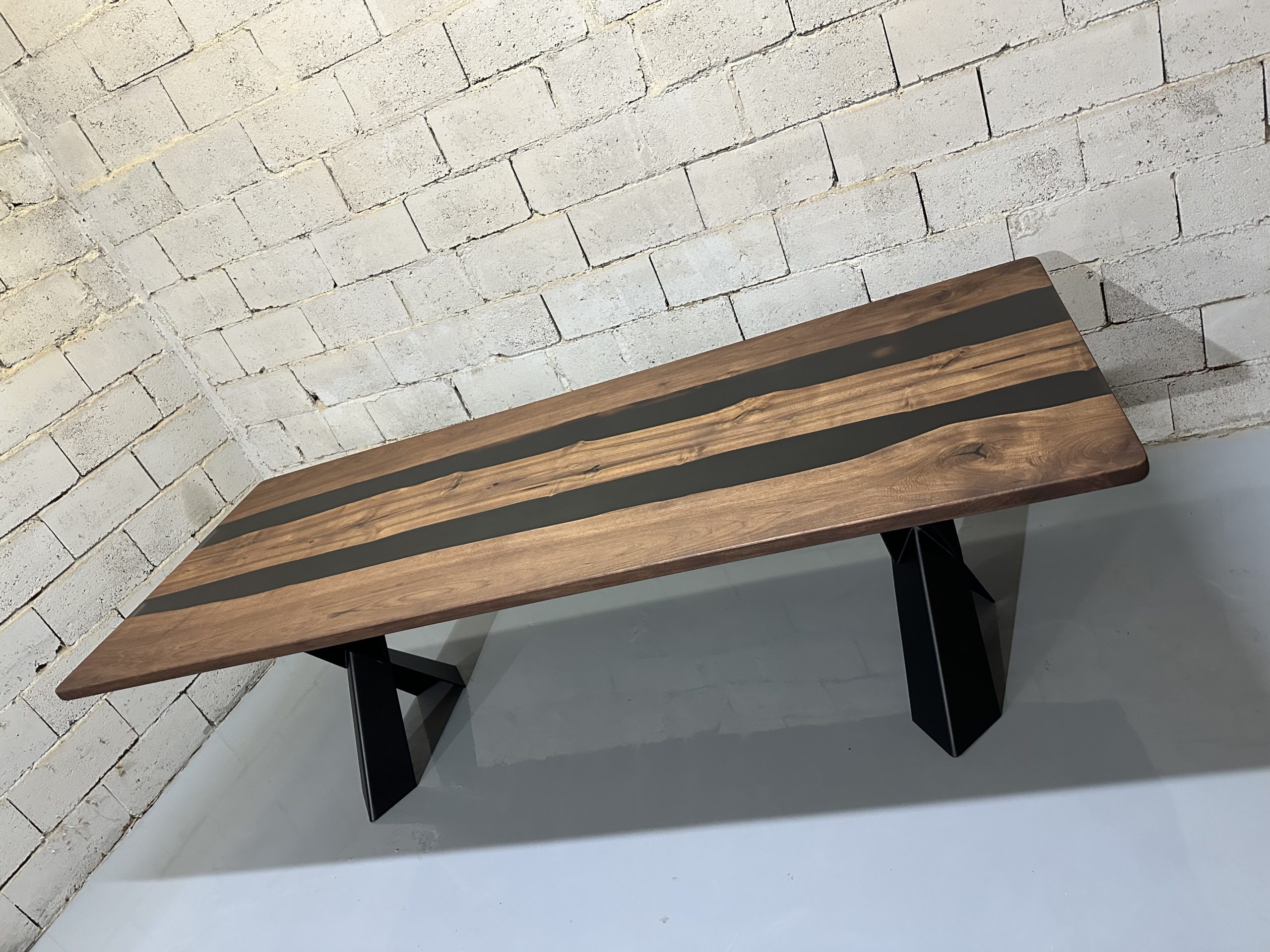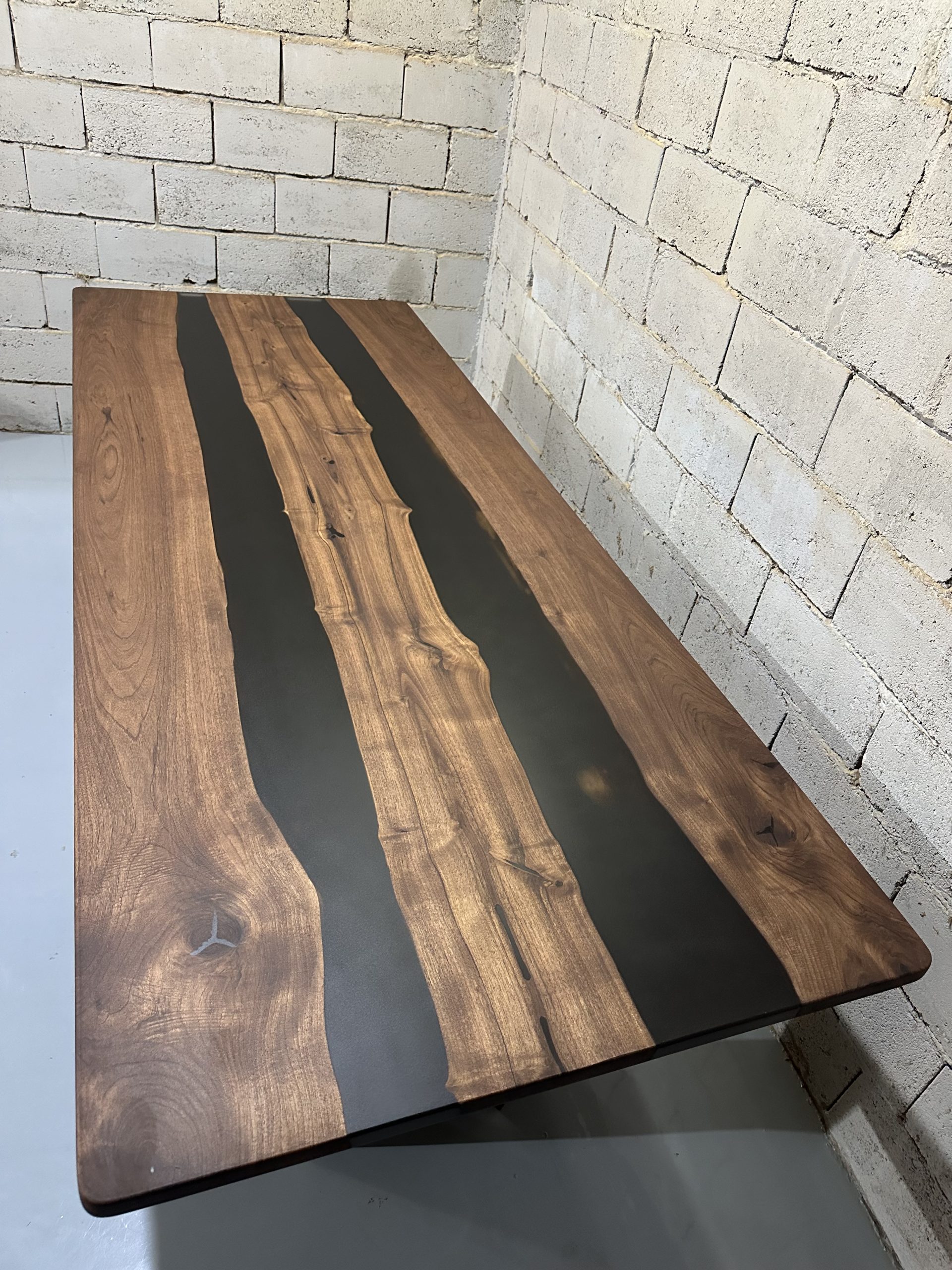 Ovaj ručno izrađeni trpezarijski sto kombinuje prirodnu lepotu orahovih dasaka sa modernim elementima smoke black epoksi smole. Sa svojim robustnim i elegantnim dizajnom, ovaj sto je savršen dodatak svakom prostoru, pružajući jedinstven i sofisticiran izgled.