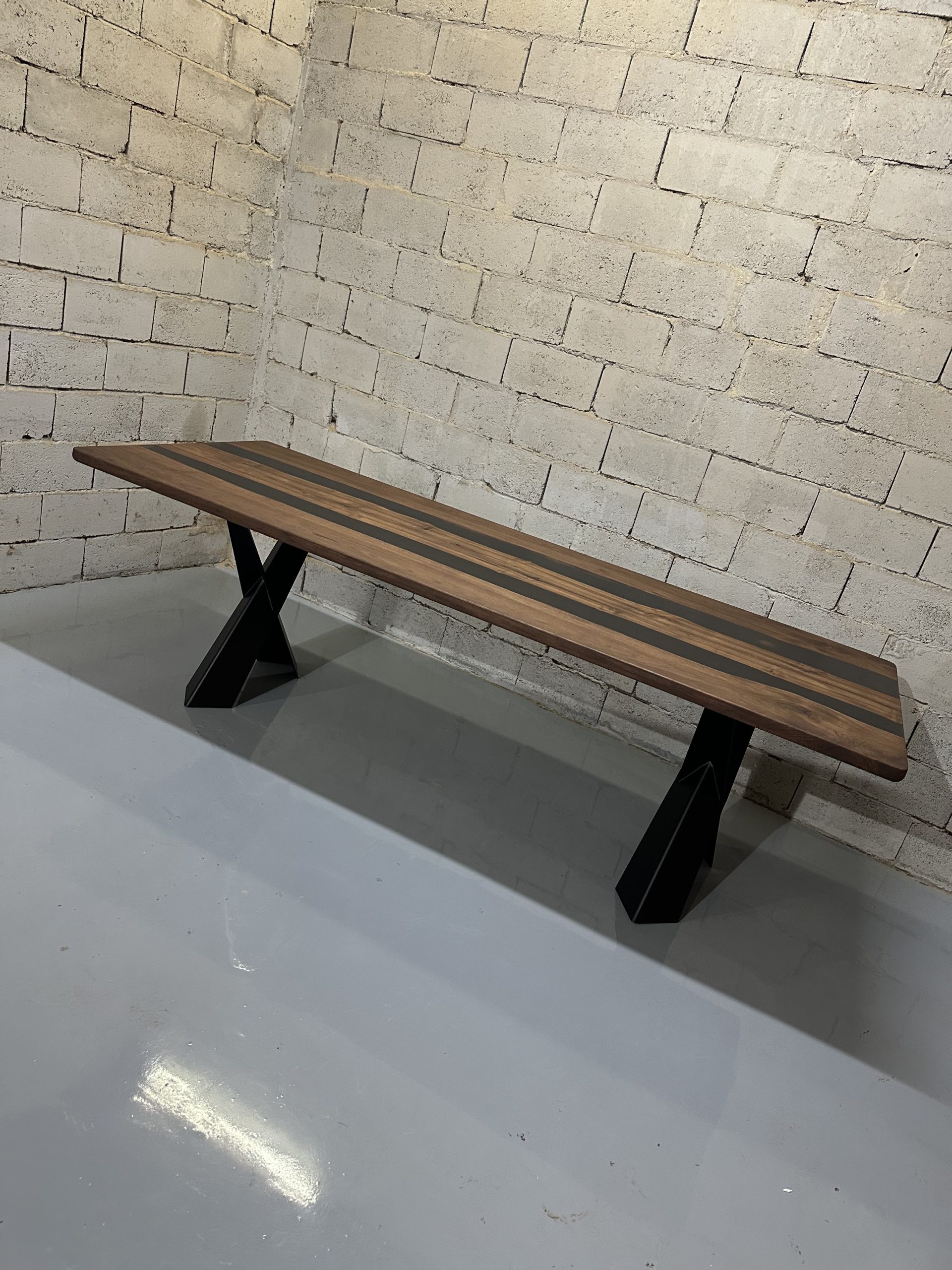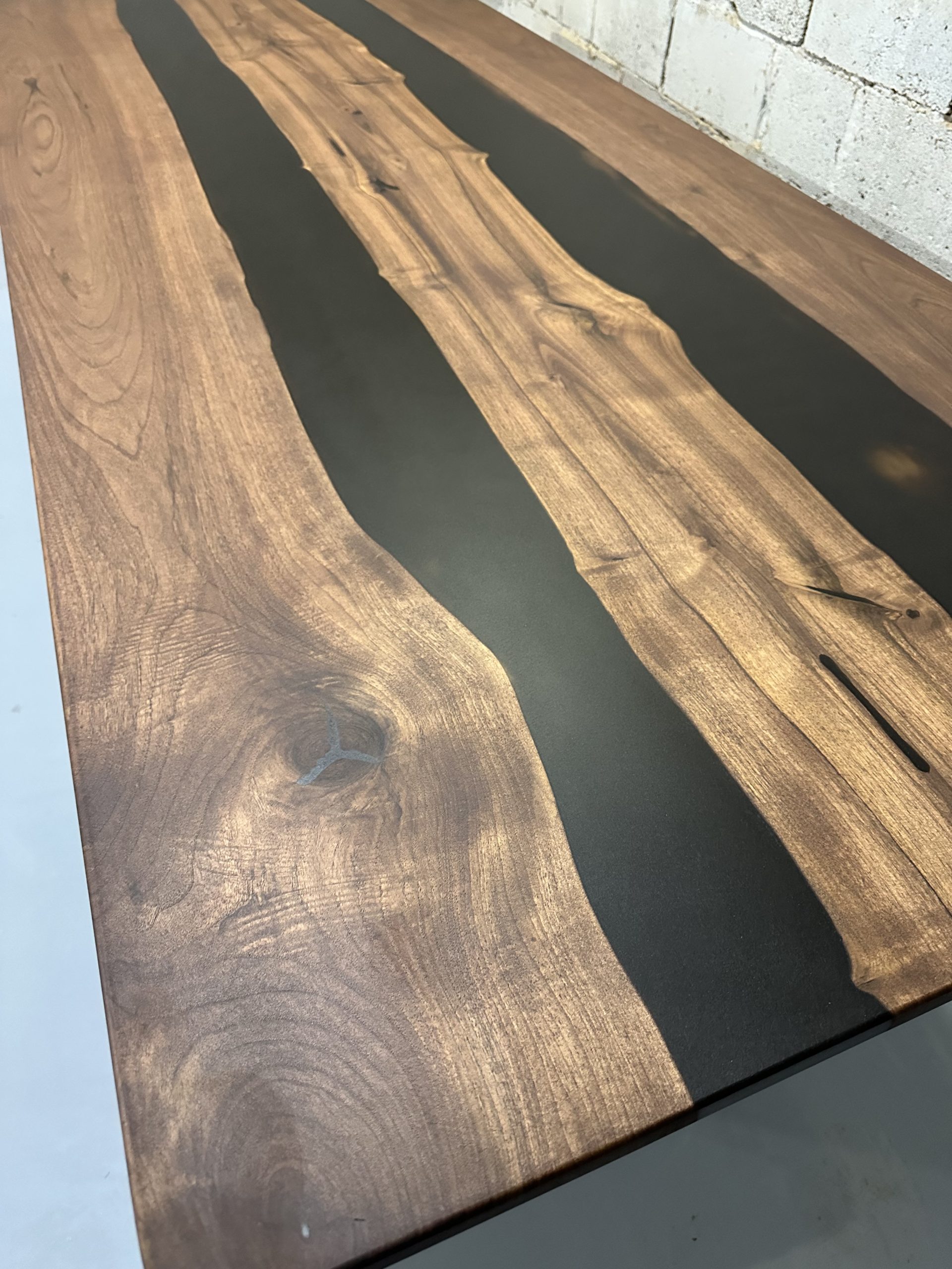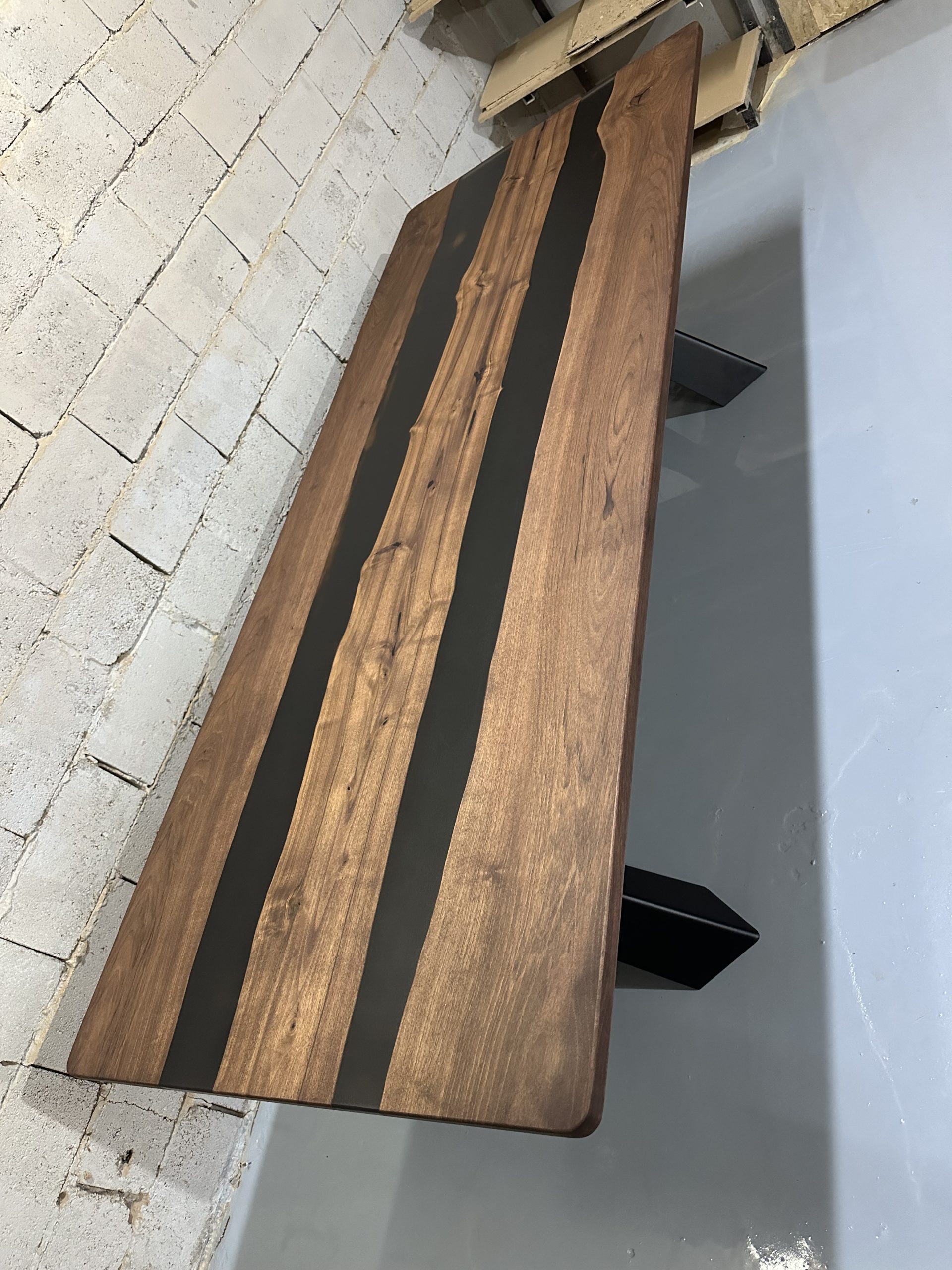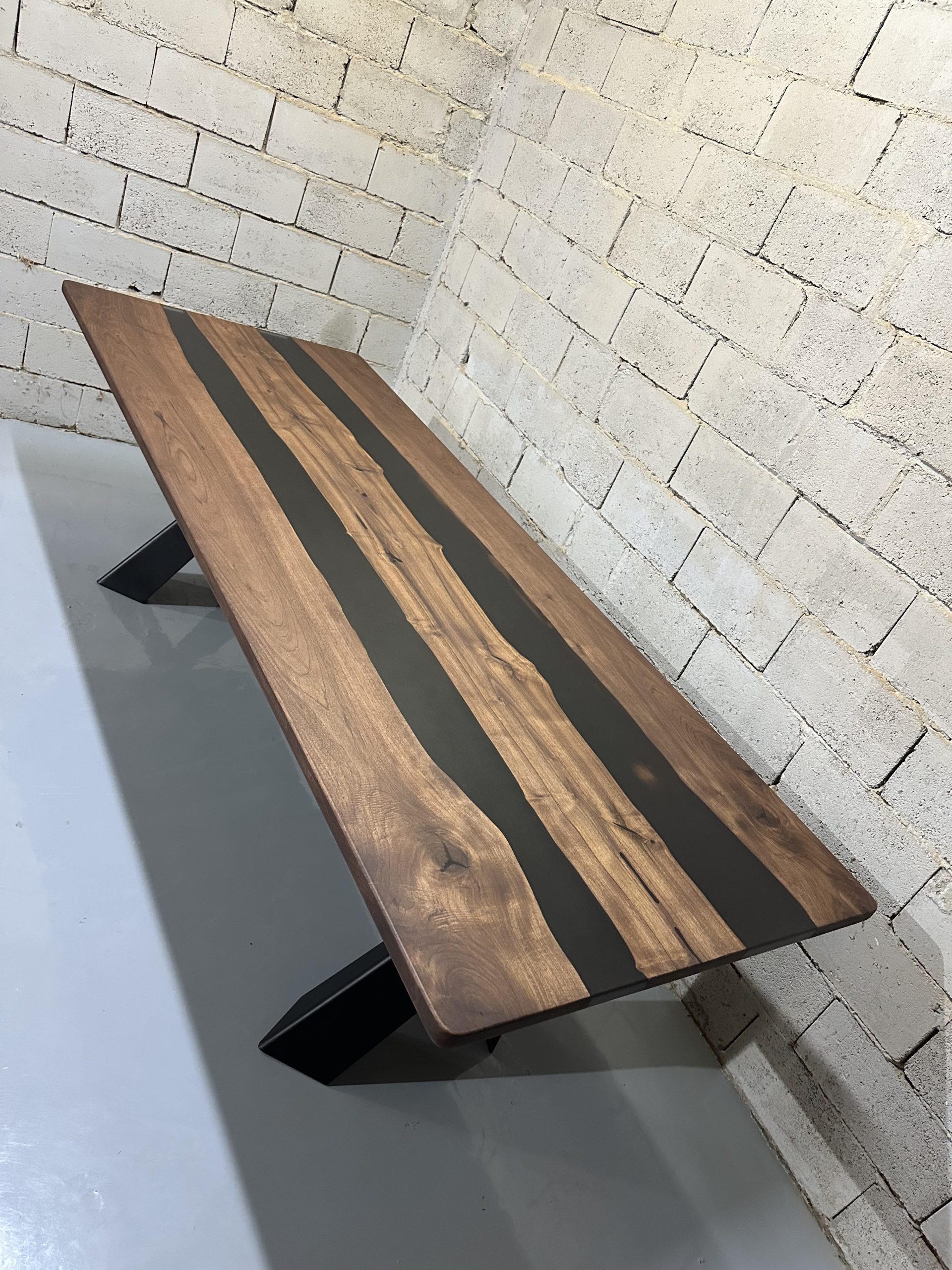 Ovaj ručno izrađeni trpezarijski sto kombinuje prirodnu lepotu orahovih dasaka sa modernim elementima smoke black epoksi smole. Sa svojim robustnim i elegantnim dizajnom, ovaj sto je savršen dodatak svakom prostoru, pružajući jedinstven i sofisticiran izgled.