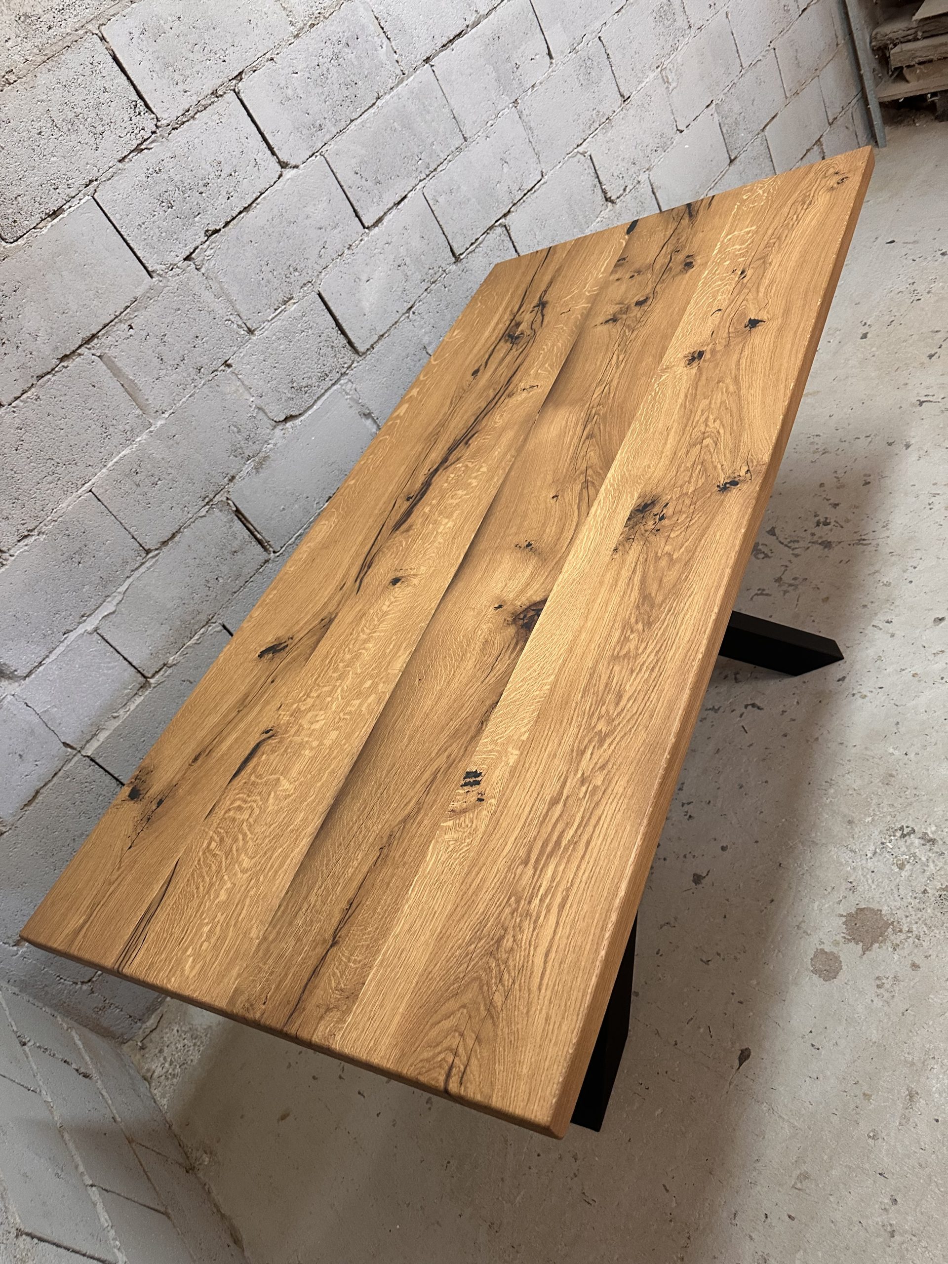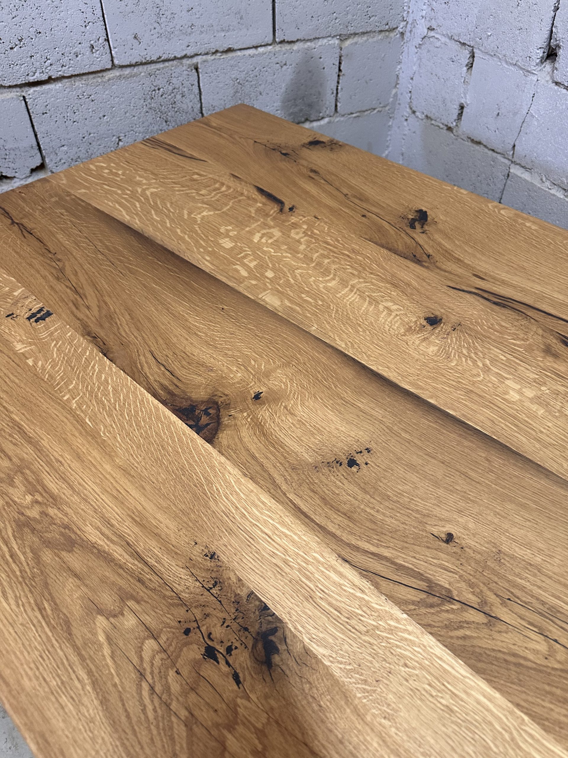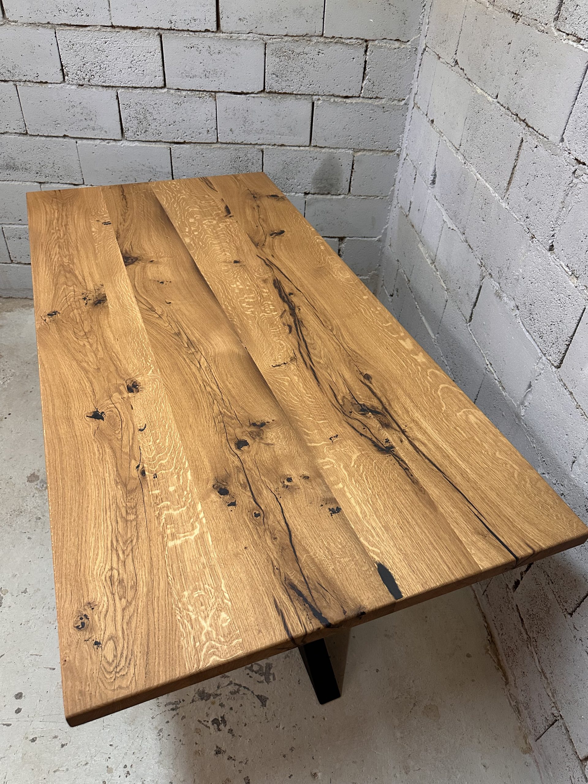 Ovaj ručno izrađeni masivni sto kombinuje prirodnu lepotu rustičnog hrasta sa modernim dizajnom. Dizajniran tako da istakne prirodnu teksturu i oblik drveta, ovaj sto je ne samo funkcionalan već i zapanjujuće umetničko delo. Idealno za dodavanje daška elegancije i sofisticiranosti u bilo koju prostoriju.