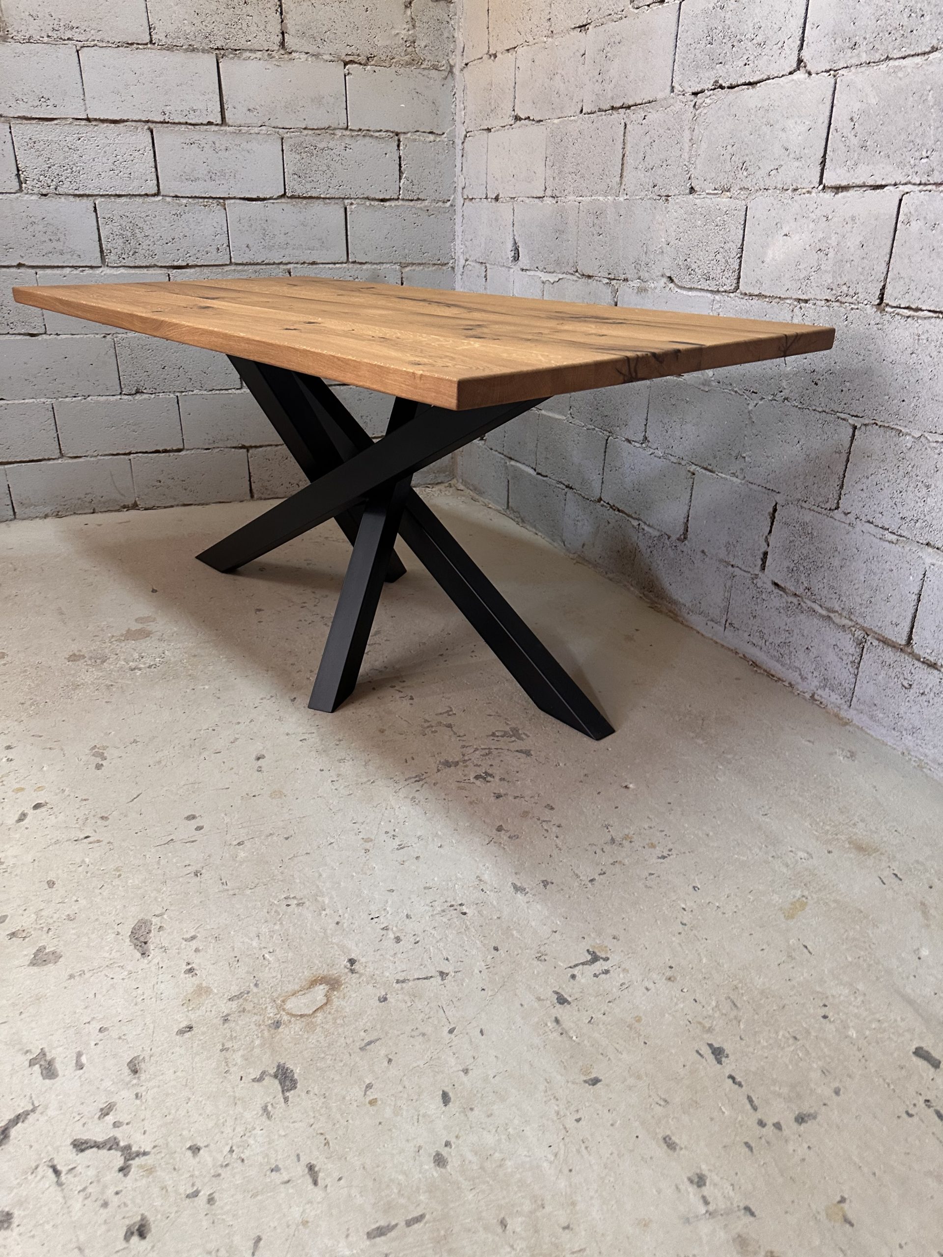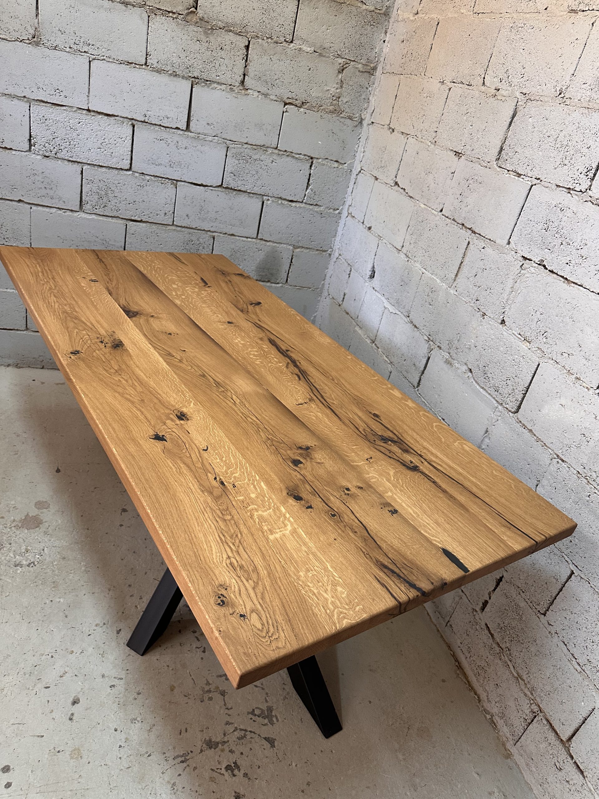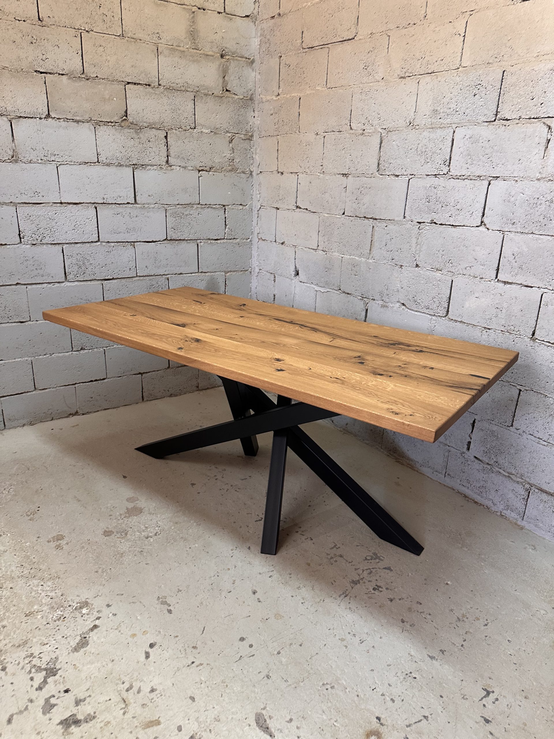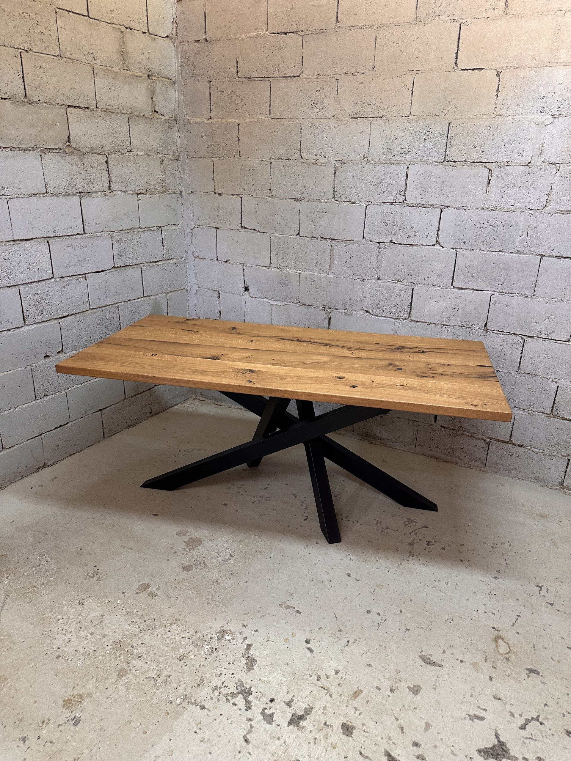 Ovaj ručno izrađeni masivni sto kombinuje prirodnu lepotu rustičnog hrasta sa modernim dizajnom. Dizajniran tako da istakne prirodnu teksturu i oblik drveta, ovaj sto je ne samo funkcionalan već i zapanjujuće umetničko delo. Idealno za dodavanje daška elegancije i sofisticiranosti u bilo koju prostoriju.