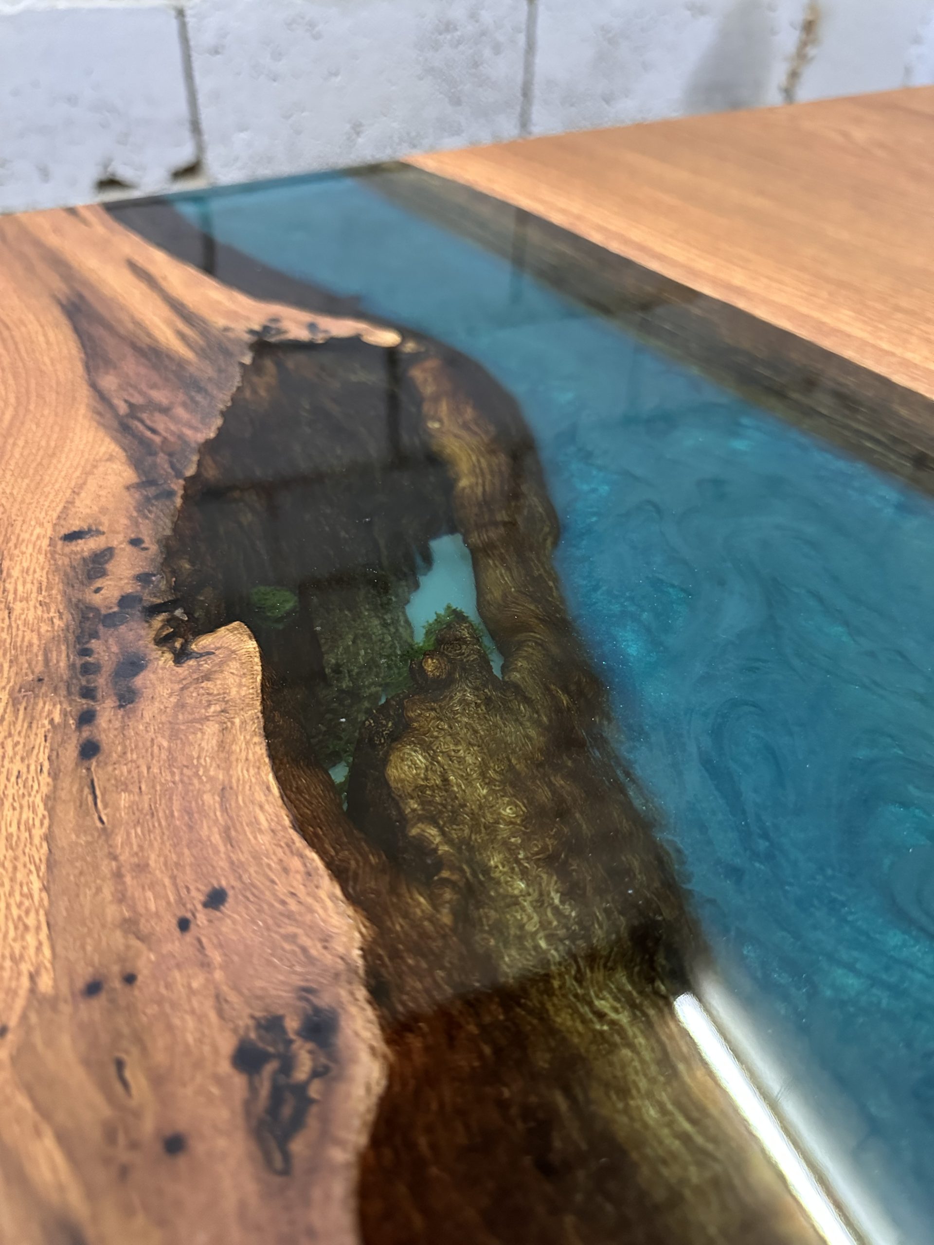 • Dizajn: tirkizno-zelena  epoksi smola ne samo da popunjava pukotine, već i dodaje moderni, sofisticirani izgled stoju.
